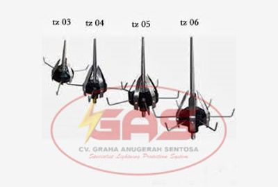 Kita juga bisa menyebutnya sebagai elektrostatic system. Bagian ujung alat ini bertugas menerima petir dengan mengumpulkan dan menyerap energi awan yang mengandung energi statik.