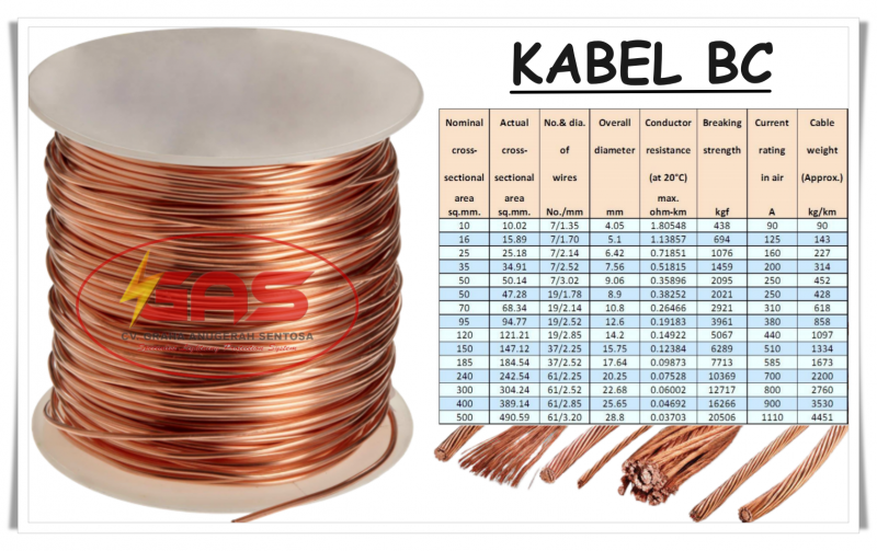 Kabel penyalur petir tanpa isolator, juga cocok digunakan untuk penyebaran petir didalam tanah (Grounding) minimal standarisasi penghantar instalasi penangkal petir adalah berpenampang 50 mm.