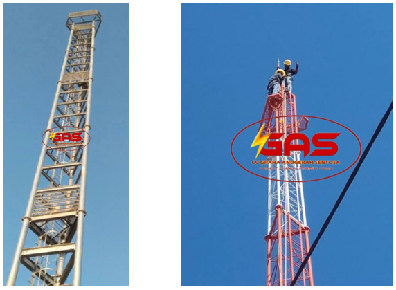 Sebuah rangkaian struktur tiang besi yang dilapisi hot dip galvanized tipe sambungan memakai joint flange untuk memberi ketinggian tertentu air terminal penangkal petir.